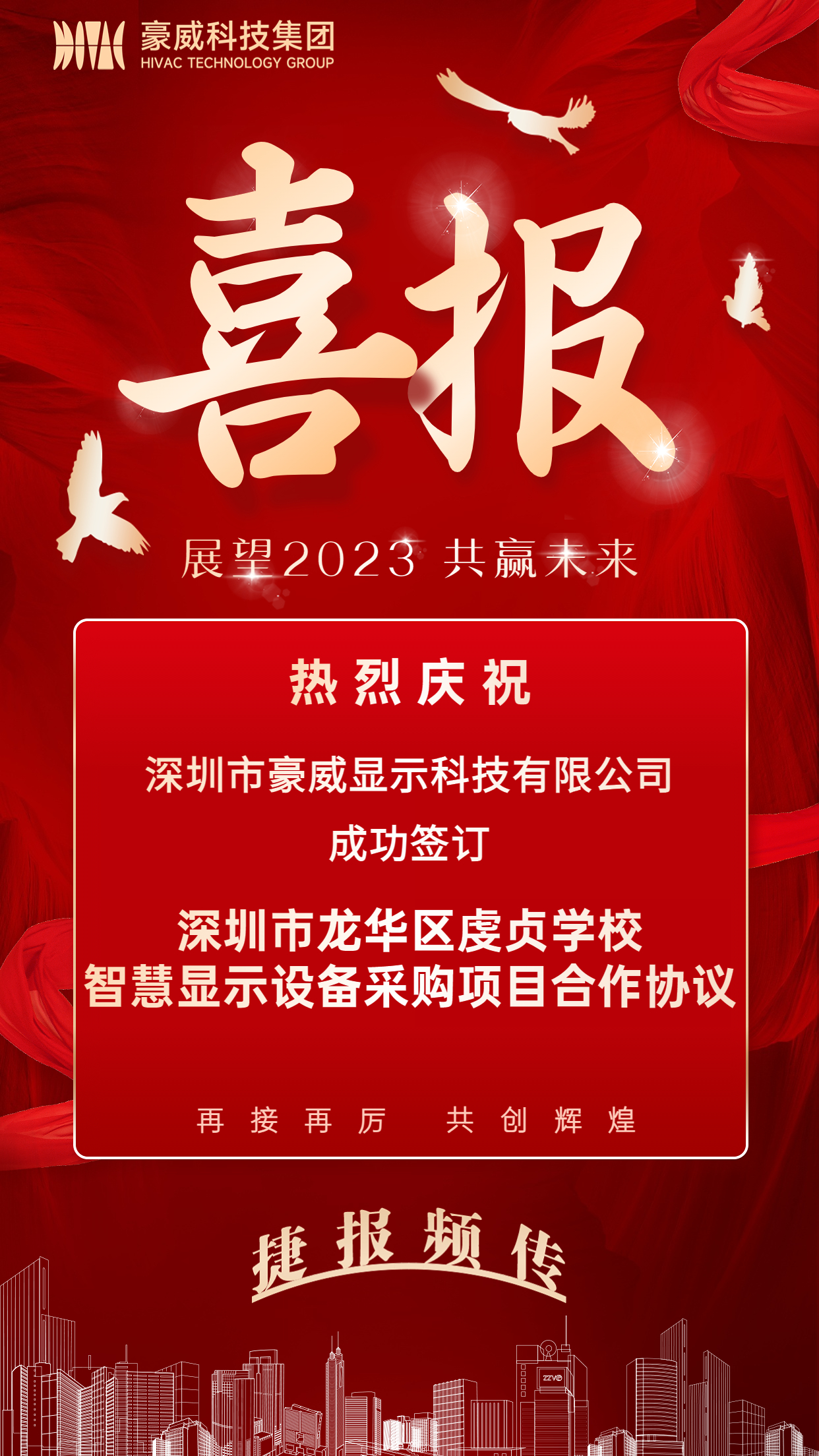 【捷报频传】乐天使fun88与深圳市龙华区虔贞学校成功签订智慧显示设备采购项目合作协议!